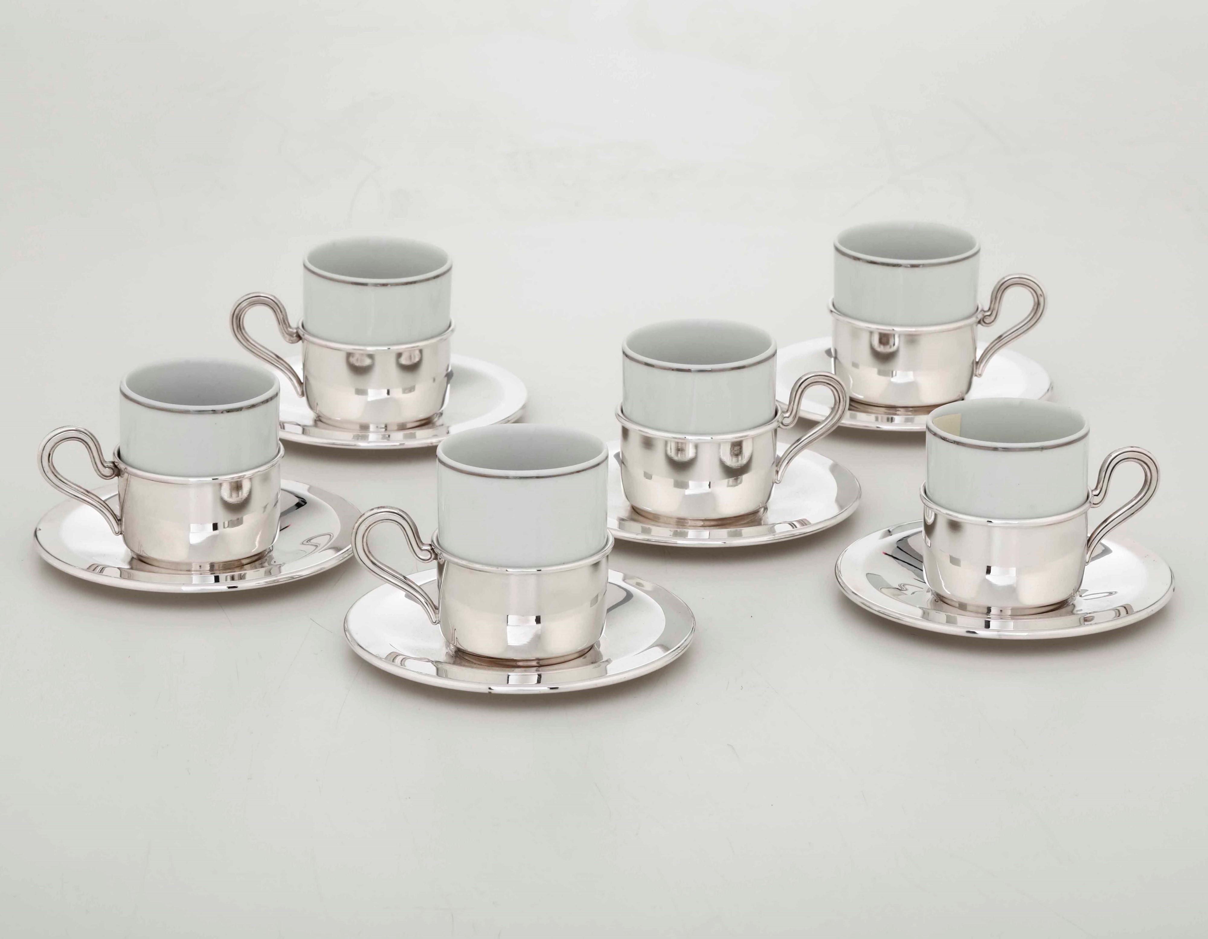 Sei tazzine da caffè in porcellana con montatura in argento. Argenteria italiana [..]