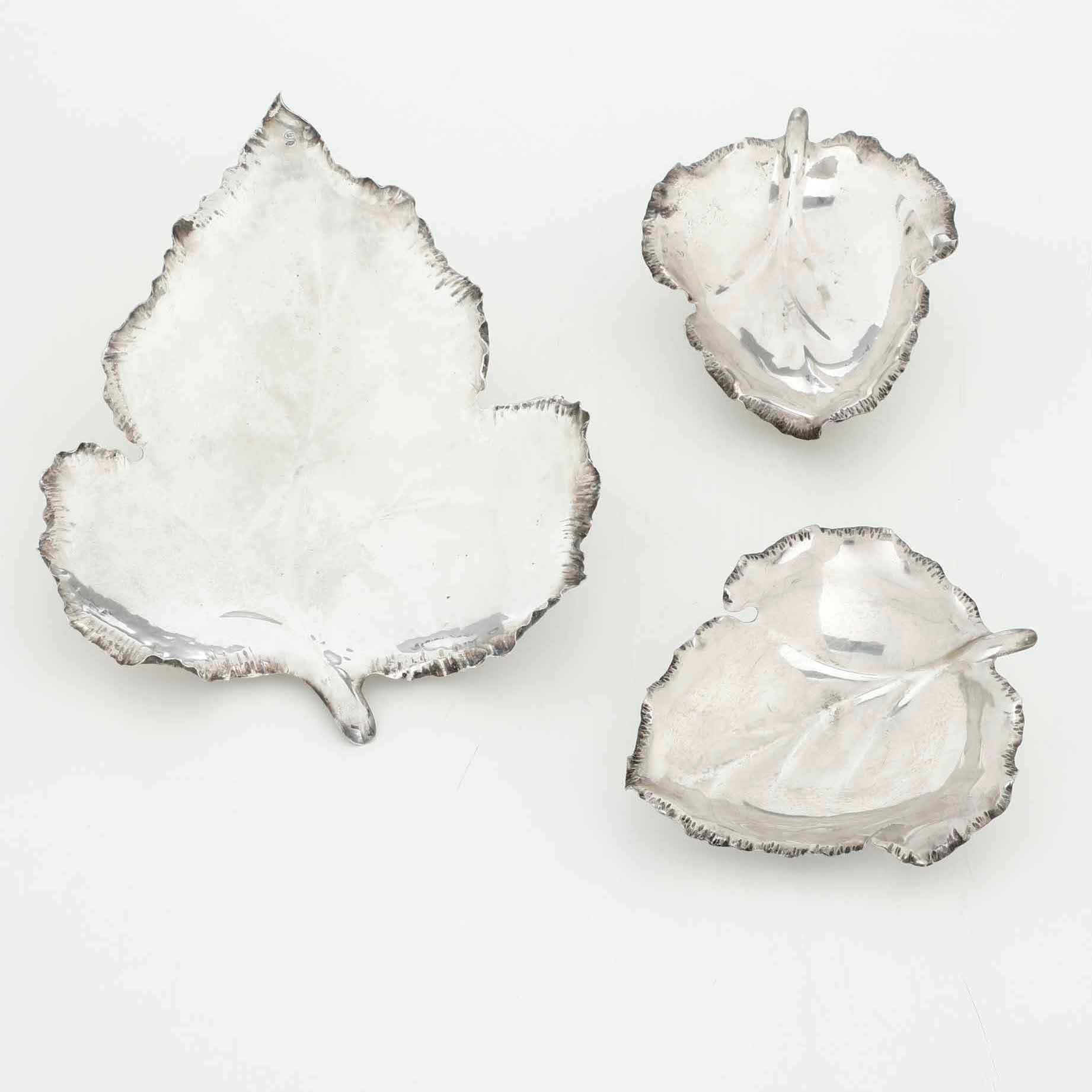 Tre ciotole a foglia in argento. Argenteria italiana del XX secolo. Argentieri d [..]