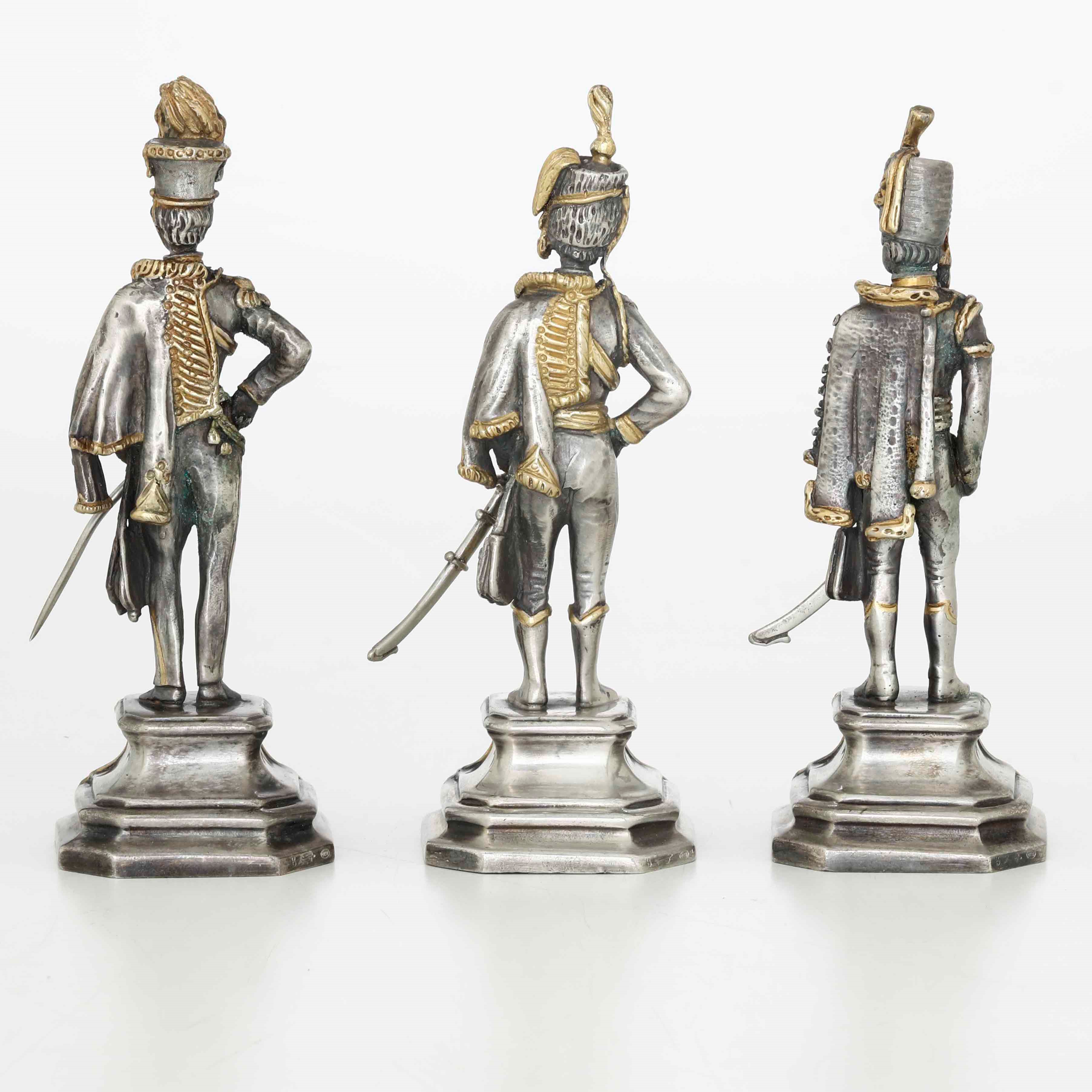 Tre ussari in argento fuso, cesellato e dorato. Argenteria artistica italiana del [..]