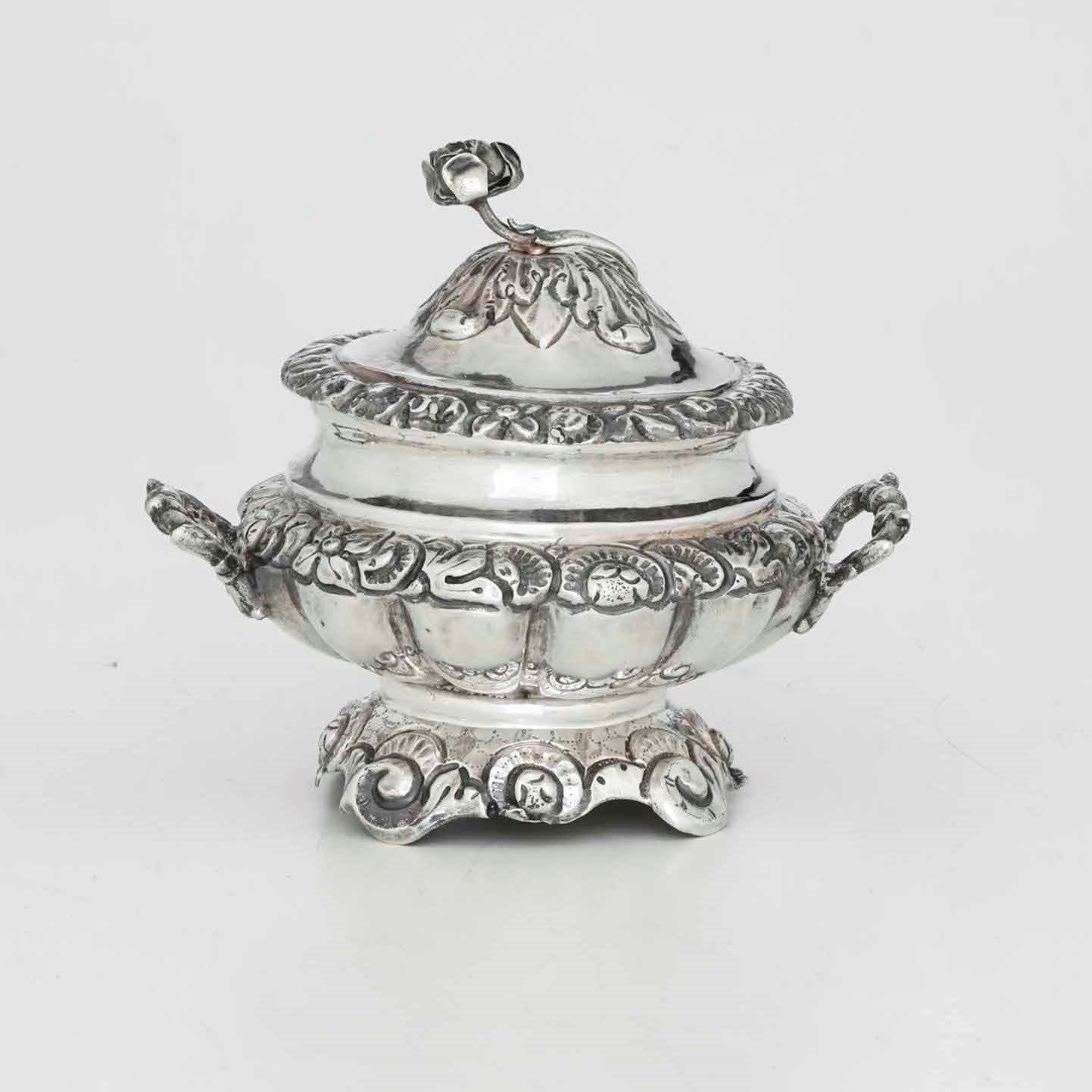 Zuccheriera in argento fuso, sbalzato e cesellato, Napoli, XIX secolo