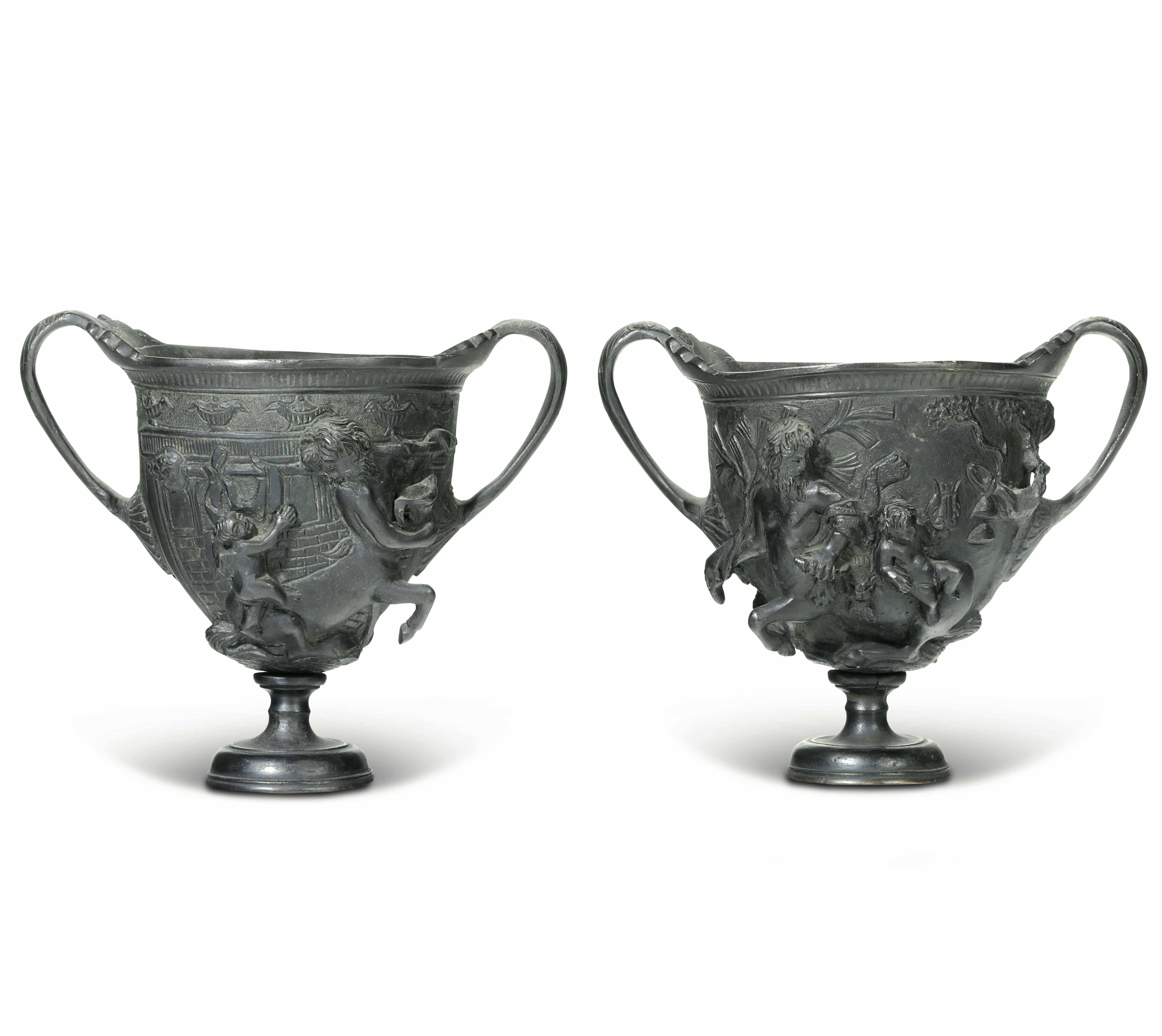 Coppia di coppe potorie Bronzo fuso e patinato Fonditore italiano (Napoli?) del [..]