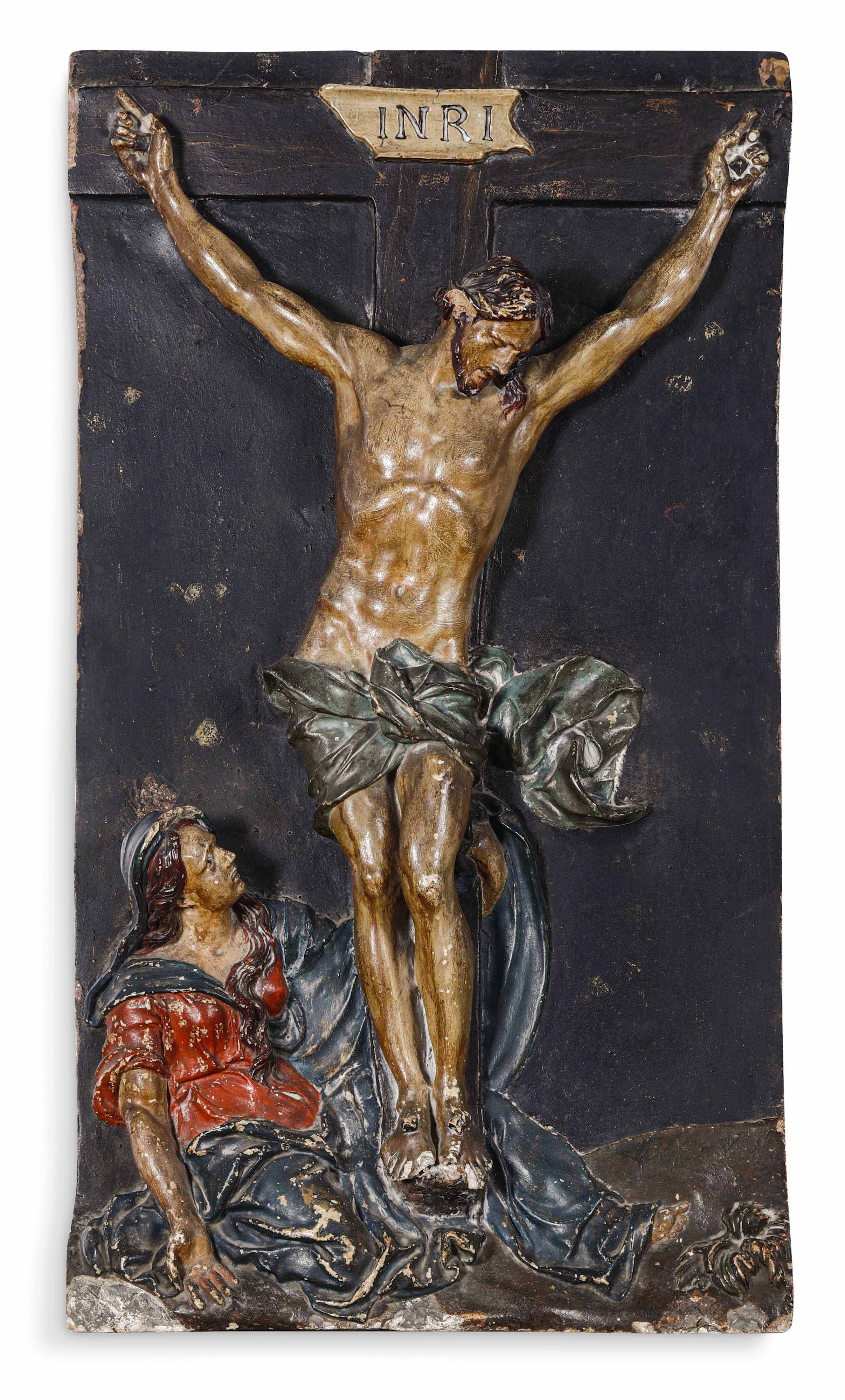 Crocefissione. Rilievo in terracotta policroma. Arte barocca italiana del XVII s [..]