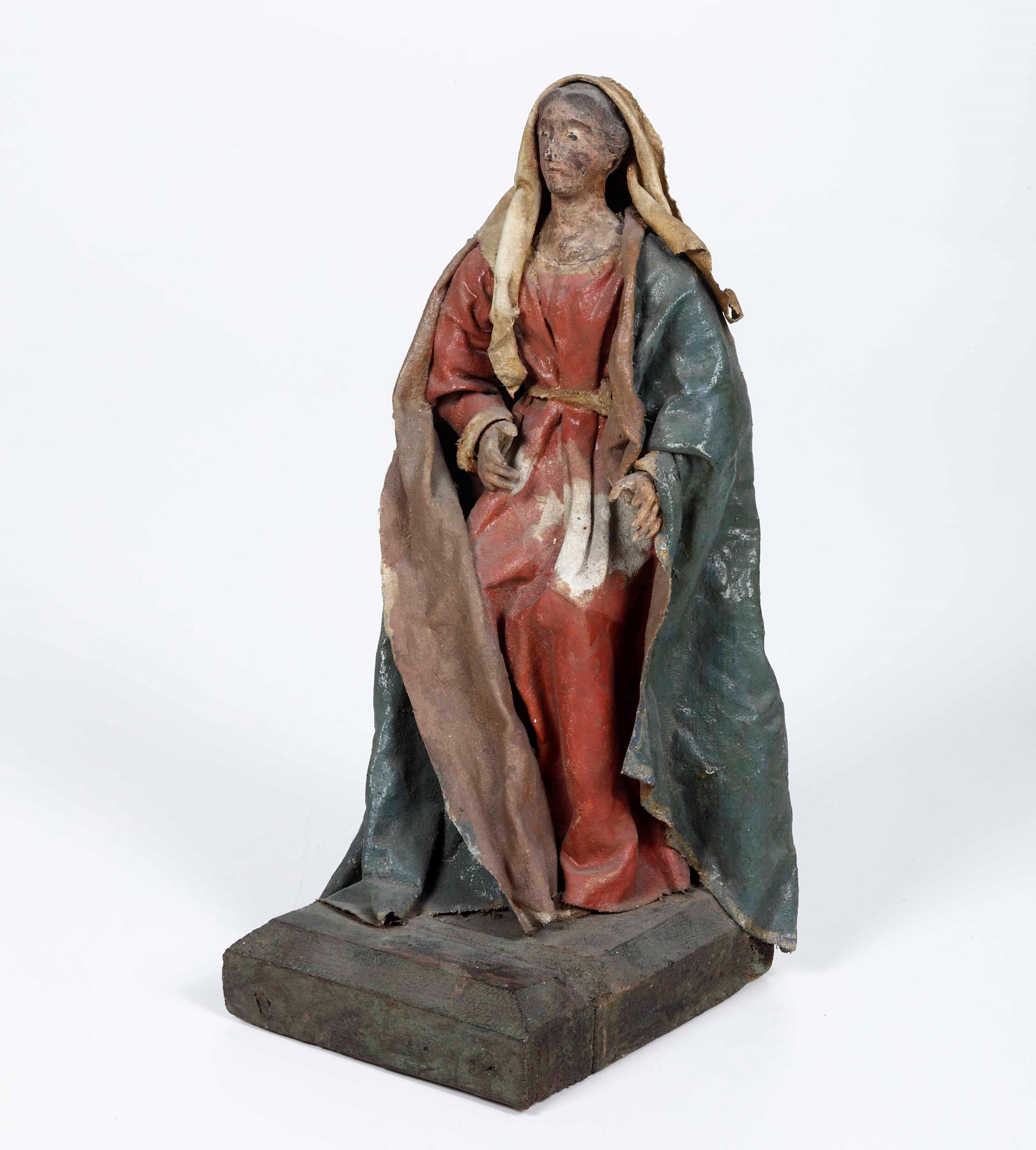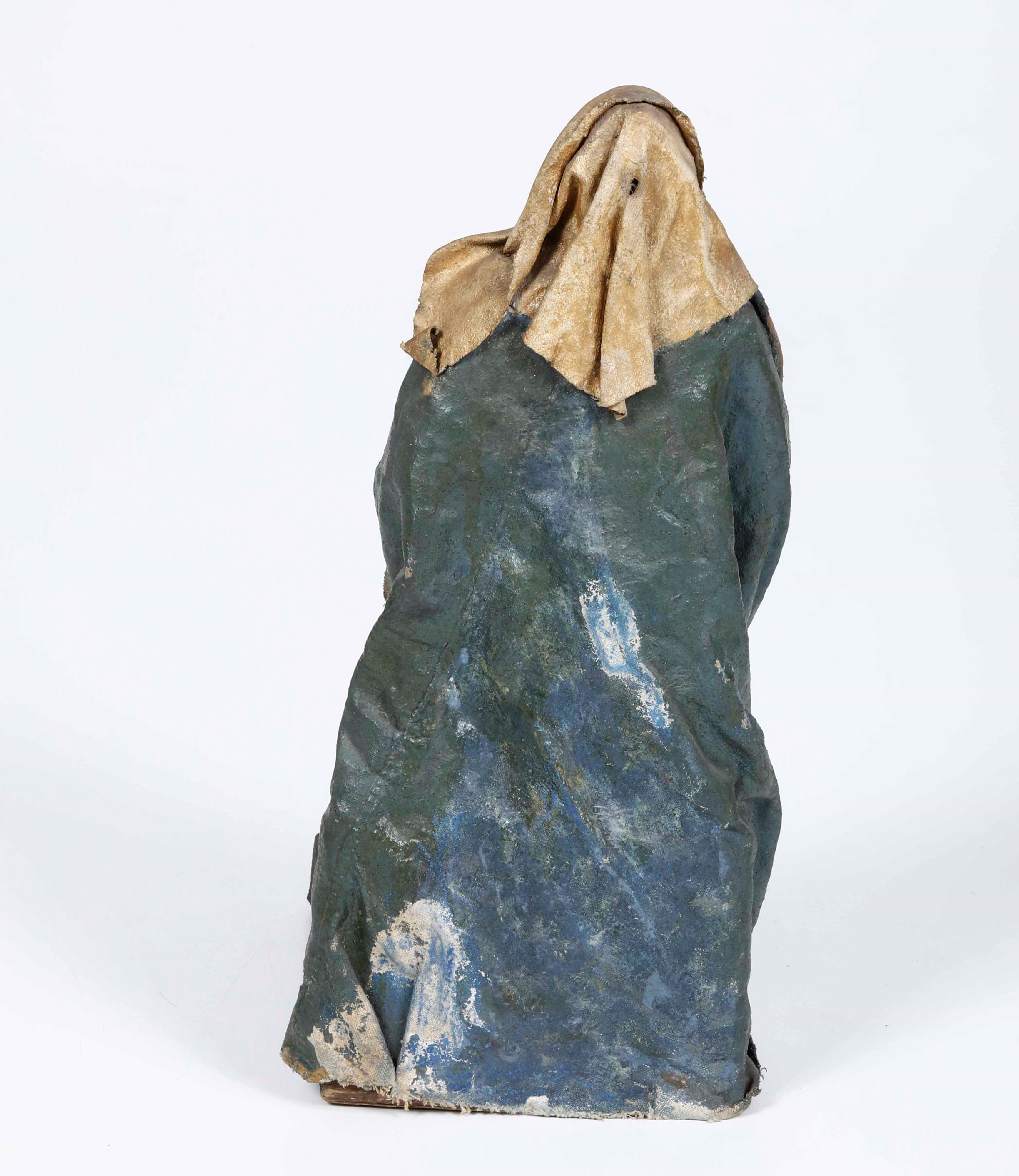 Figura da presepe in cartapesta. Madonna. Italia XVIII-XIX secolo
