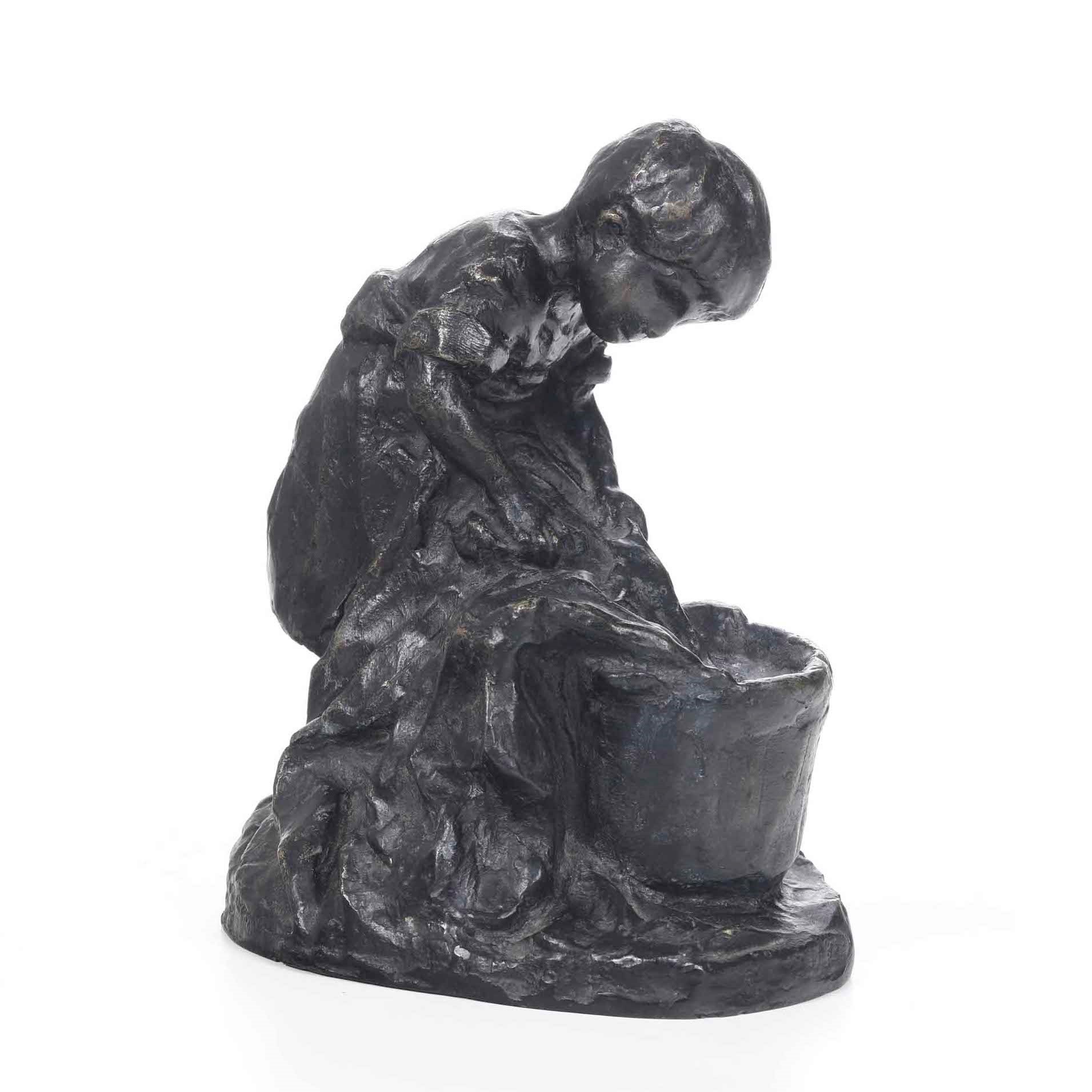 Lavandaia. Bronzo fuso firmato R. Riboldi. Inizio XX secolo