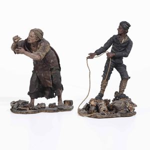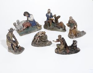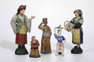 Lotto di cinque figurine da presepe. Italia XIX-XX secolo