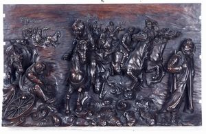 Rilievo in legno scolpito e patinato raffigurante la Battaglia di Lule Burgas. Scultore [..]