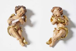Coppia di putti. Legno scolpito. XIX-XX secolo