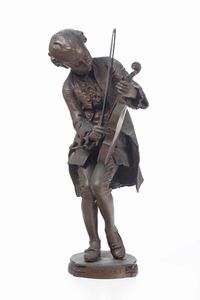 Scultura in bronzo di violinista. Fonditore del XX secolo