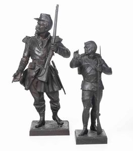 Due sculture in bronzo raffiguranti soldati. Firma A. Poitevin inciso alla base [..]