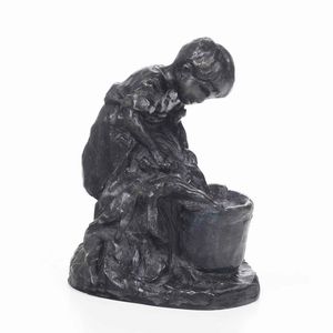 Lavandaia. Bronzo fuso firmato R. Riboldi. Inizio XX secolo