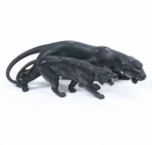 Due gruppi di cani da caccia in bronzo, XX secolo