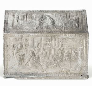 Modello di urna in gesso con raffigurazioni della vita della Vergine Maria di gusto [..]