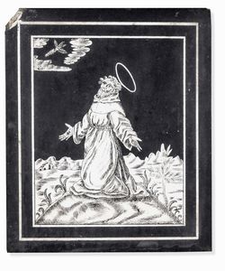 San Francesco riceve le stimmate. Pannello in scagliola monocroma. Arte barocca [..]