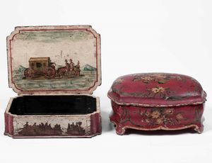 Due scatole diverse in legno laccato. XIX secolo