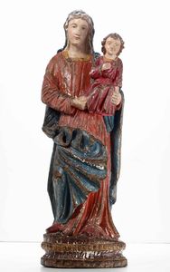 Madonna con Bambino. Legno laccato. Scultore del XVII secolo