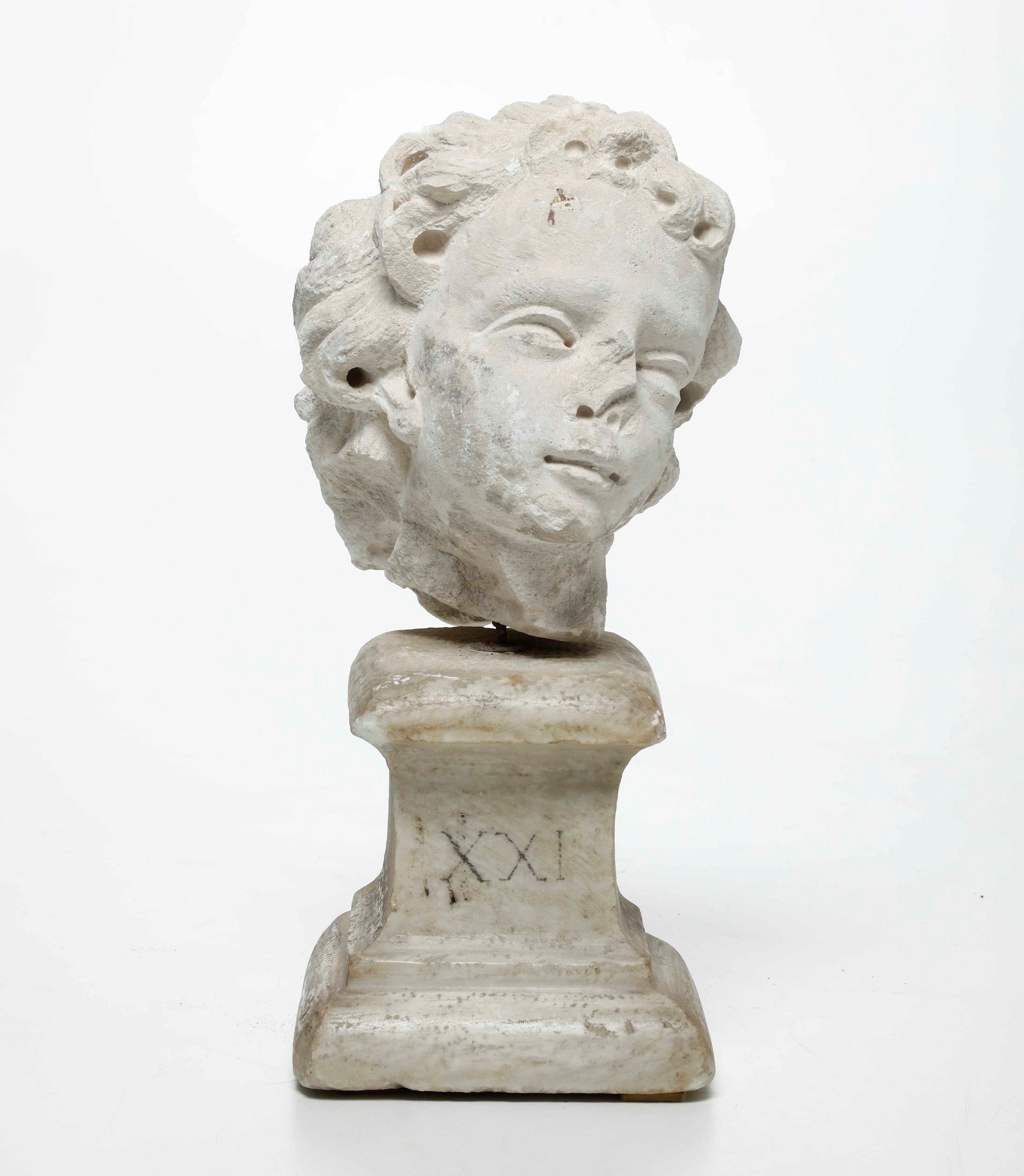 Testa di fanciullo. Pietra scolpita. Arte barocca del XVII-XVIII secolo