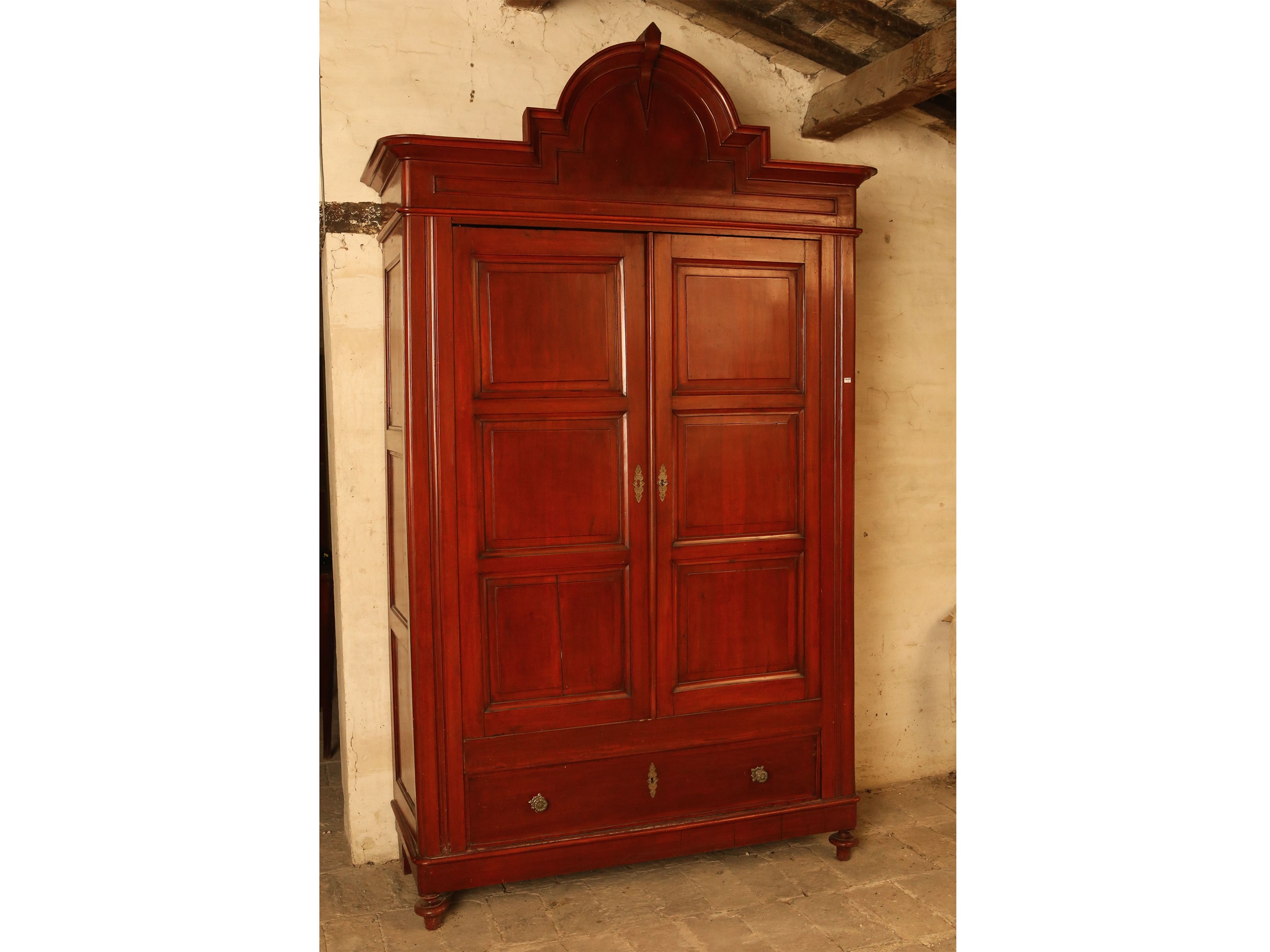 seconda metà del XIX secolo alta cimasa centinata, due sportelli a grandi riquadri con cassetto sottostante, piedi a cipolla, lievi difetti