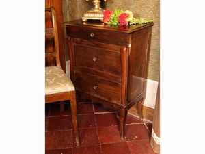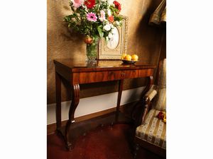 h cm 83x56x35 XIX secolo tre cassetti sul fronte, piedi a sciabola, alcuni difetti