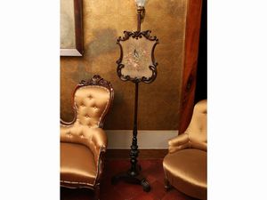 h cm 166, ventola cm 43x38 Italia centrale, metà del XIX secolo cornici intagliate a volute su steli torniti [..]