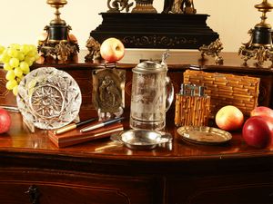 tankard h cm 20 (8) tra cui un tankard in cristallo di Boemia, molato con una volpe, due penne, un set da fumo [..]