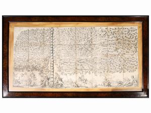 complessivamente cm 74x150 Napoli, 1691 incisione su trentadue segmenti di carta applicata a tessuto, in cornice, [..]