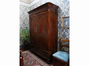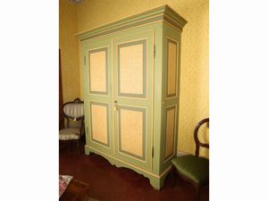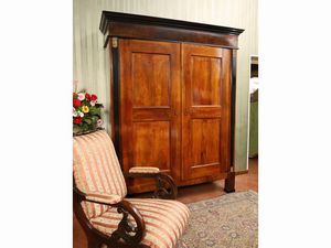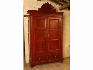 h cm 237x130x50 seconda metà del XIX secolo alta cimasa centinata, due sportelli a grandi riquadri con cassetto [..]