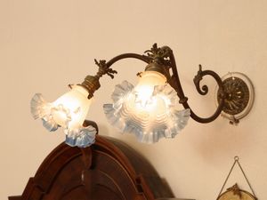 lungh cm 50 inizio del XX secolo con due bobeche a tulipano in vetro sfumato celeste