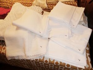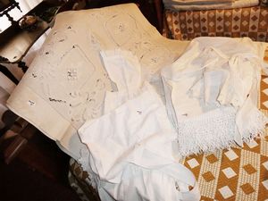 la ricamata cm 150x300, cm 210x150 e cm 220x160 circa inizio del XX secolo due in lino di Fiandra corredate da [..]