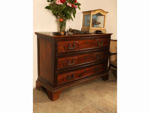 h cm 93x52x131 Italia centrale, XVIII secolo tre cassetti con formelle sagomate, piedi a mensola, difetti e r [..]