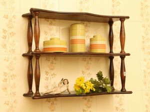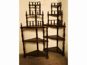 h cm 136x62x32 inizio del XX secolo cinque ripiani tra sostegni torniti sormontati da pinnacoli