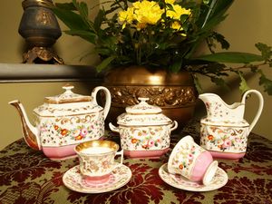 caffettiera h cm 16 (15) Francia, metà del XIX secolo dipinto con fiori multicolori, bordi rosa e lumeggiature [..]