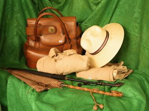 borsone h cm 50x41x26 (5) inizio del XX secolo tra cui un borsone da viaggio in pelle, un completo in lino grezzo [..]