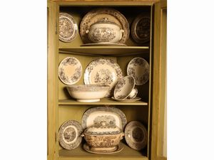 fine del XIX/inizio del XX secolo decorati in monocromia marrone con vedute di vario genere, motivi floreali [..]