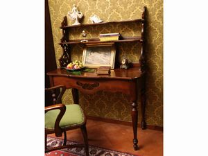 scrittoio h cm 80x112x50, alzata h cm 70x104x27 seconda metà del XIX secolo pendaglina sagomata, gambe tornite, [..]