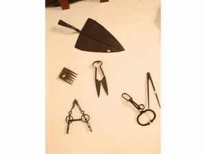 XIX/XX secolo tra cui delle pinze, un morso per cavalli, alcune falcette e roncole, alcuni difetti (23 circa)