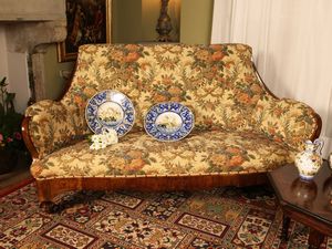 h cm 107x197x67 metà del XIX secolo schienale avvolgente degradante nei braccioli, rivestito in tessuto gobelin [..]