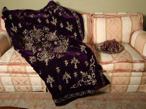 cm 182x140 XIX secolo finemente ricamato in fili metallici dorati con motivo di corone e fiori, fodera in cotone [..]