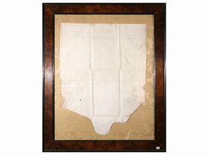 cm 35x54 Napoli,1574 antico documento manoscritto su pergamena, alcune mancanze, in cornice