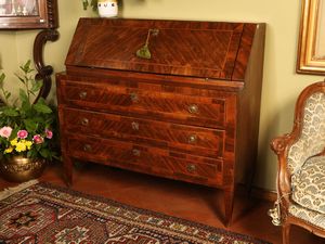 h cm 105x112x44 fine del XVIII secolo intarsiato con filettature in legni di frutto, piano a calatoio a celare [..]