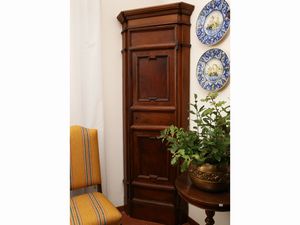 h cm 206x63x37 metà del XIX secolo uno sportello a vetro sul fronte tra lesene a colonna tortile, su due sostegni [..]
