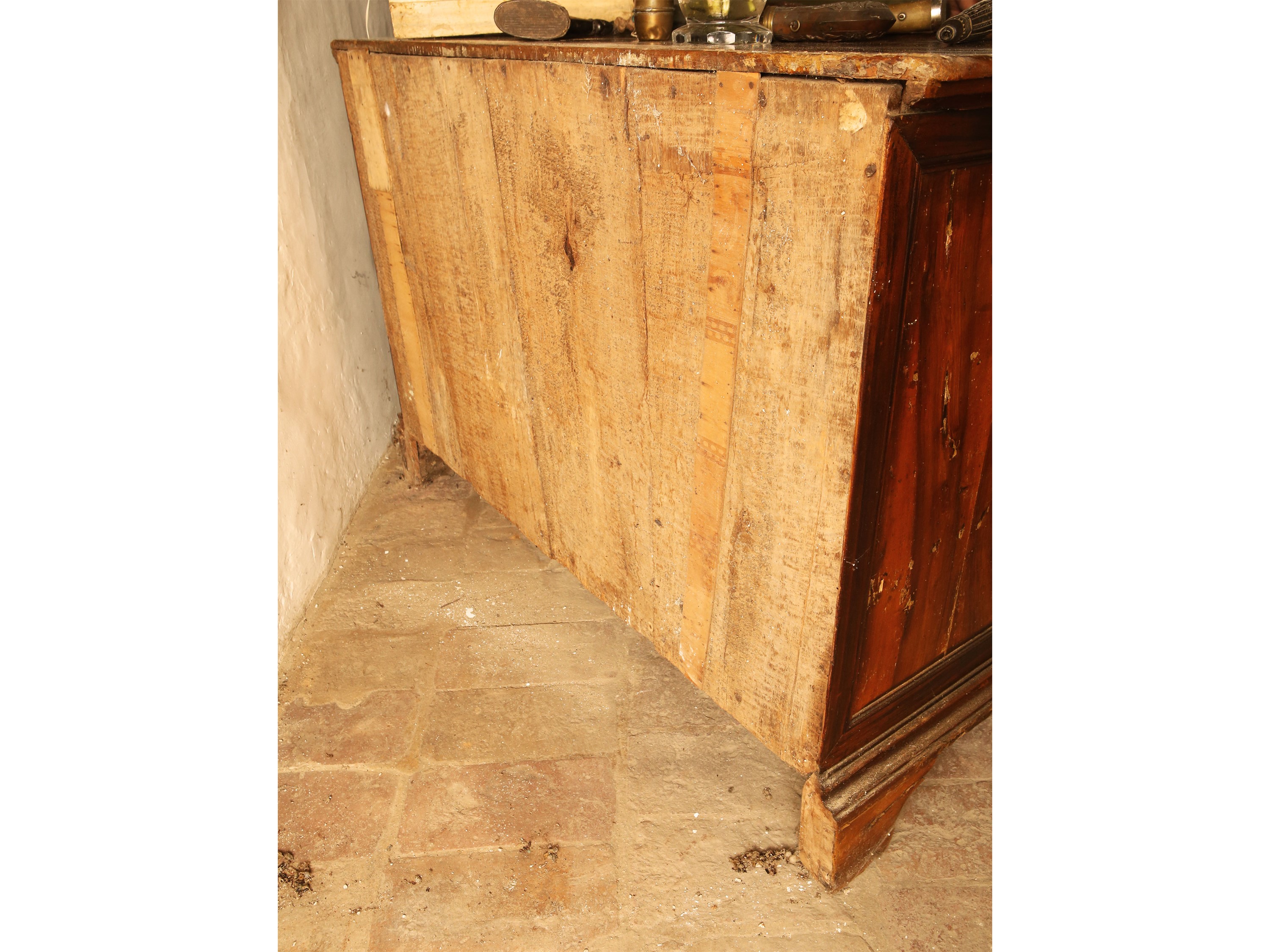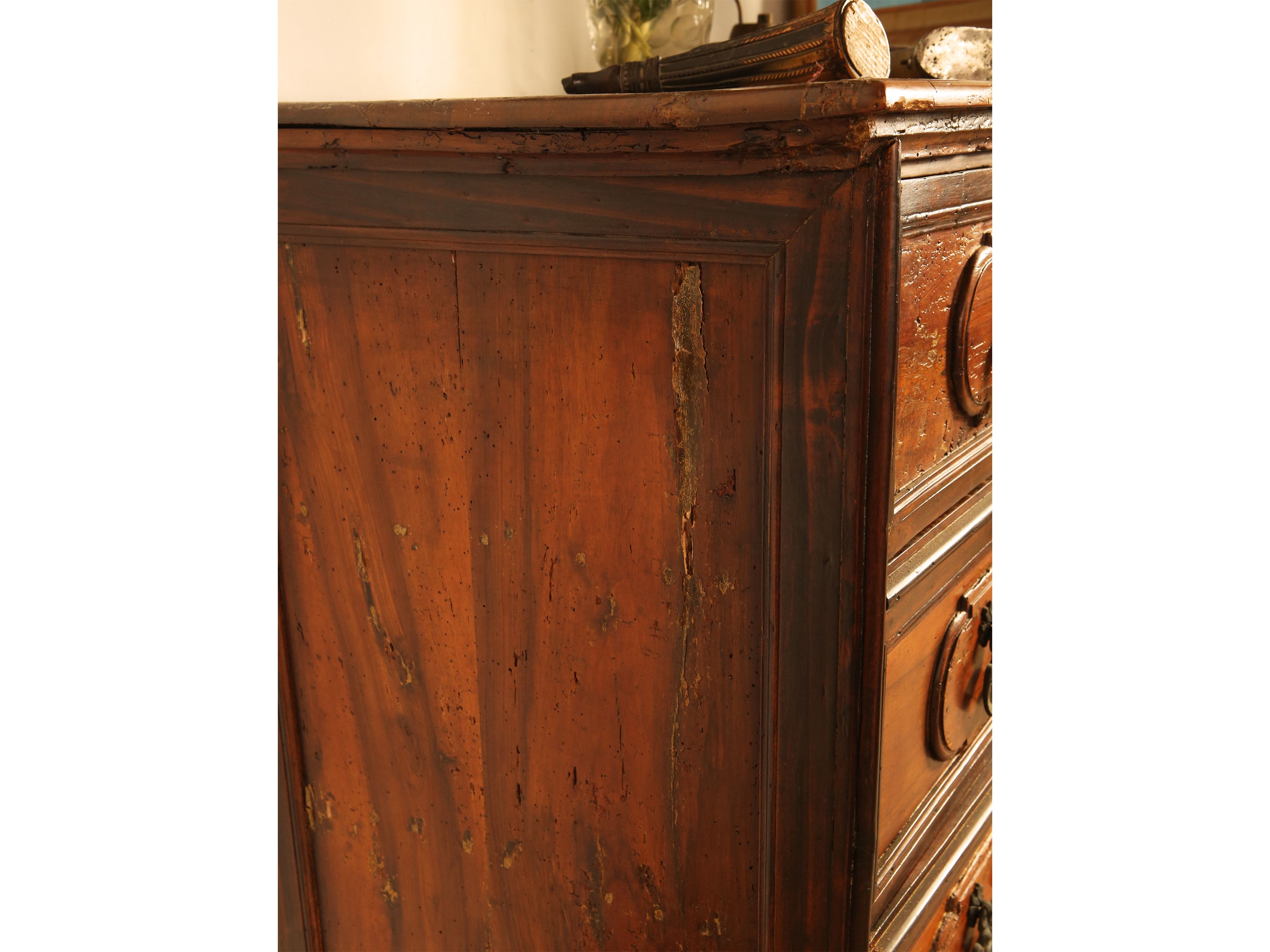 Italia centrale, XVIII secolo tre cassetti con formelle sagomate, piedi a mensola, difetti e restauri