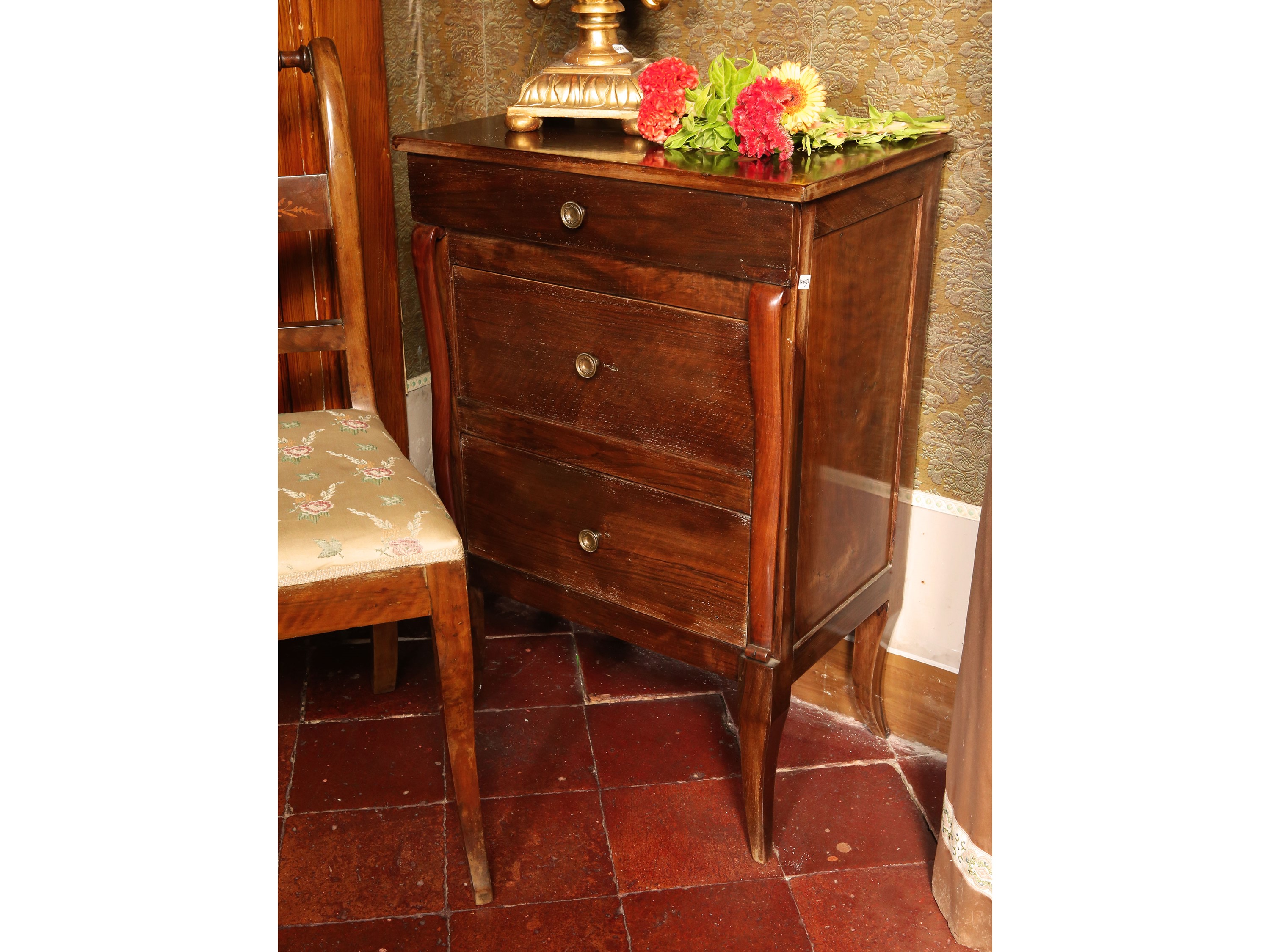 XIX secolo tre cassetti sul fronte, piedi a sciabola, alcuni difetti