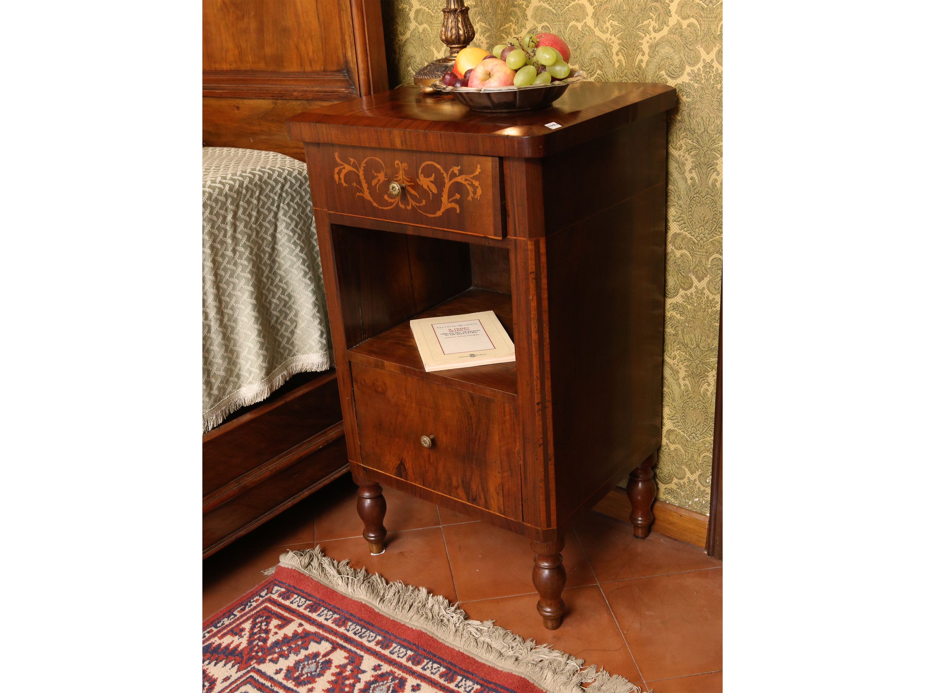 metà del XIX secolo piano e cassetto intarsiato con volute e girali in legno di frutto, piedi a vaso