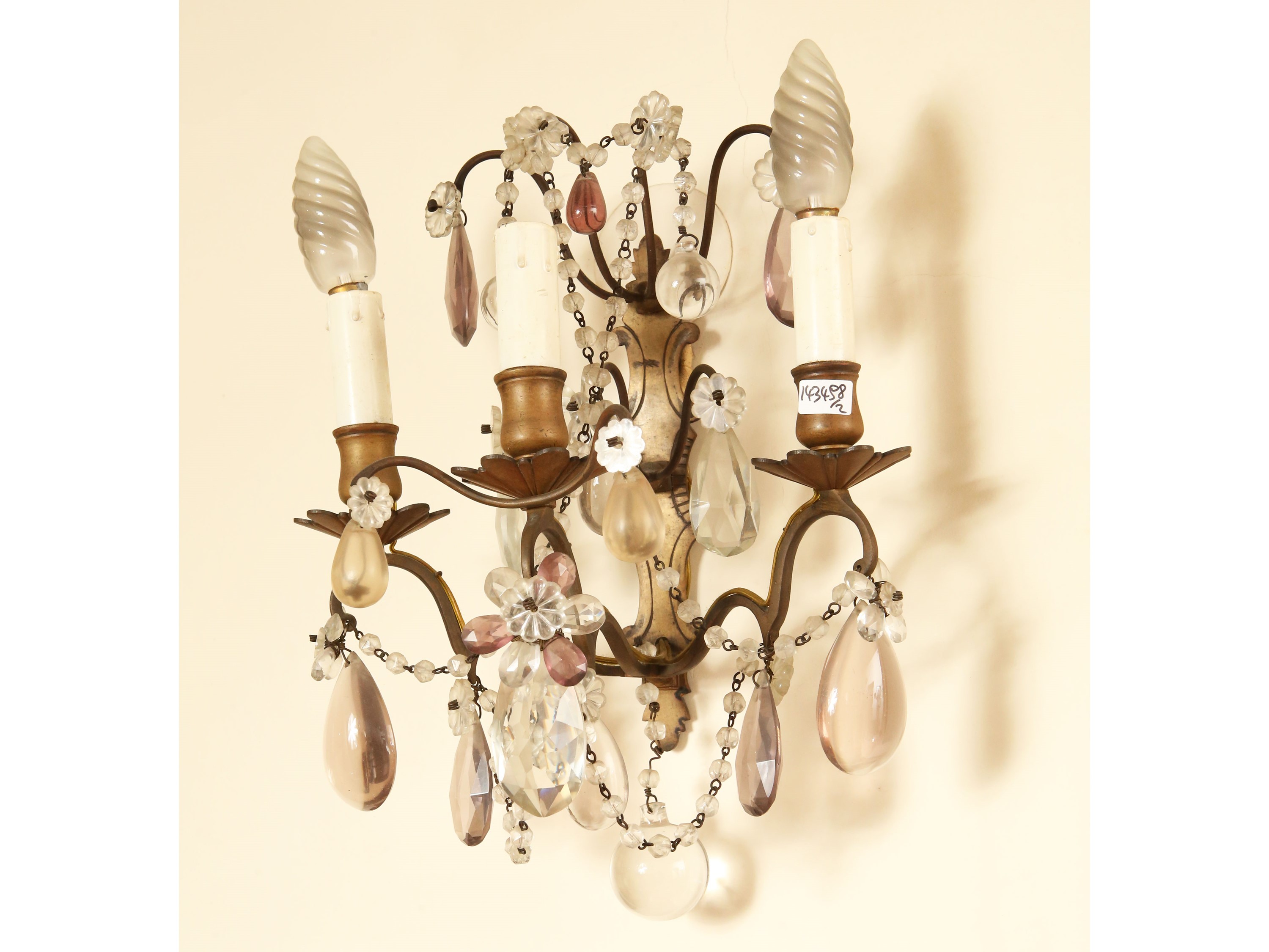 Coppia di applique in metallo e vetro
