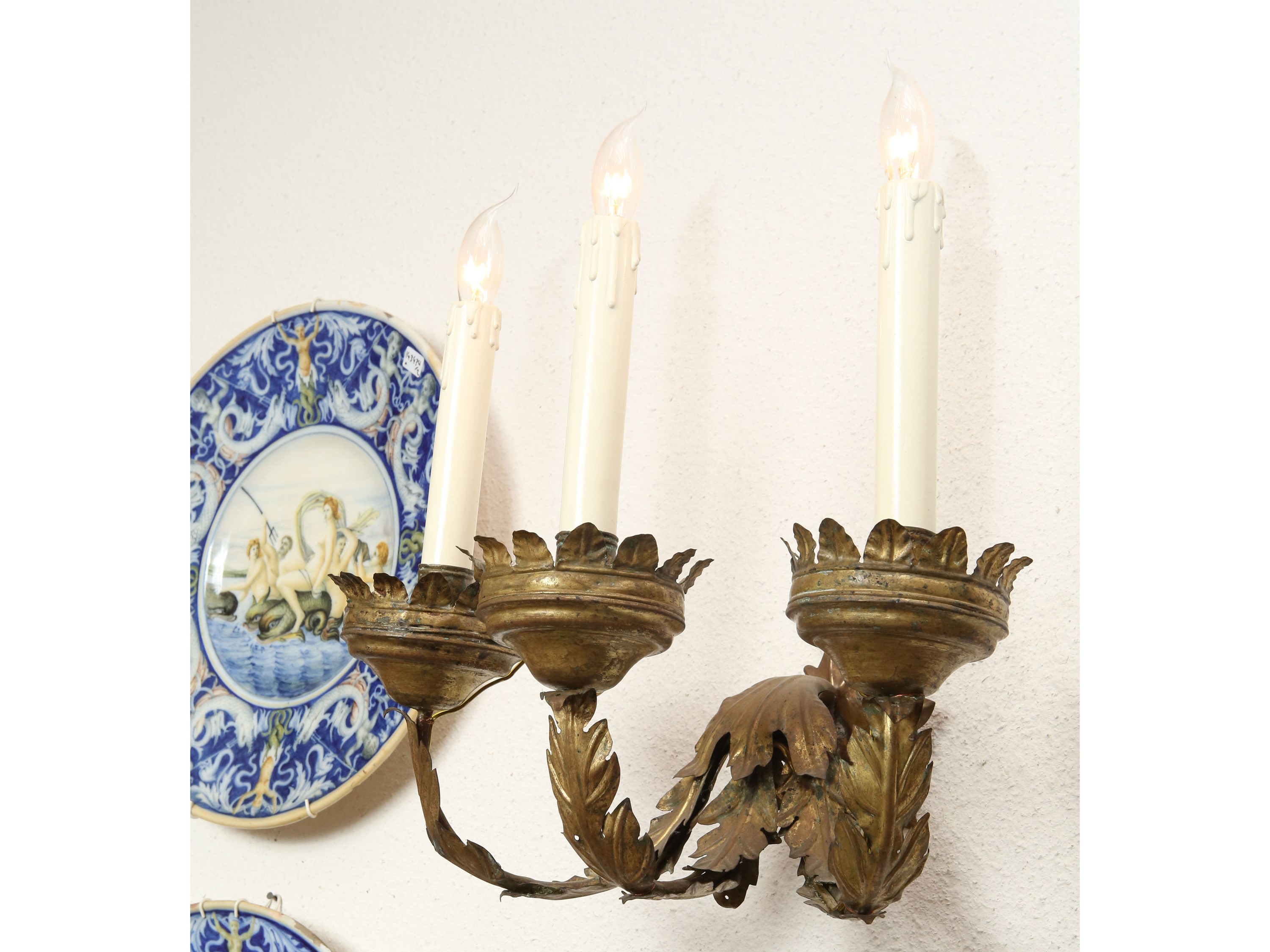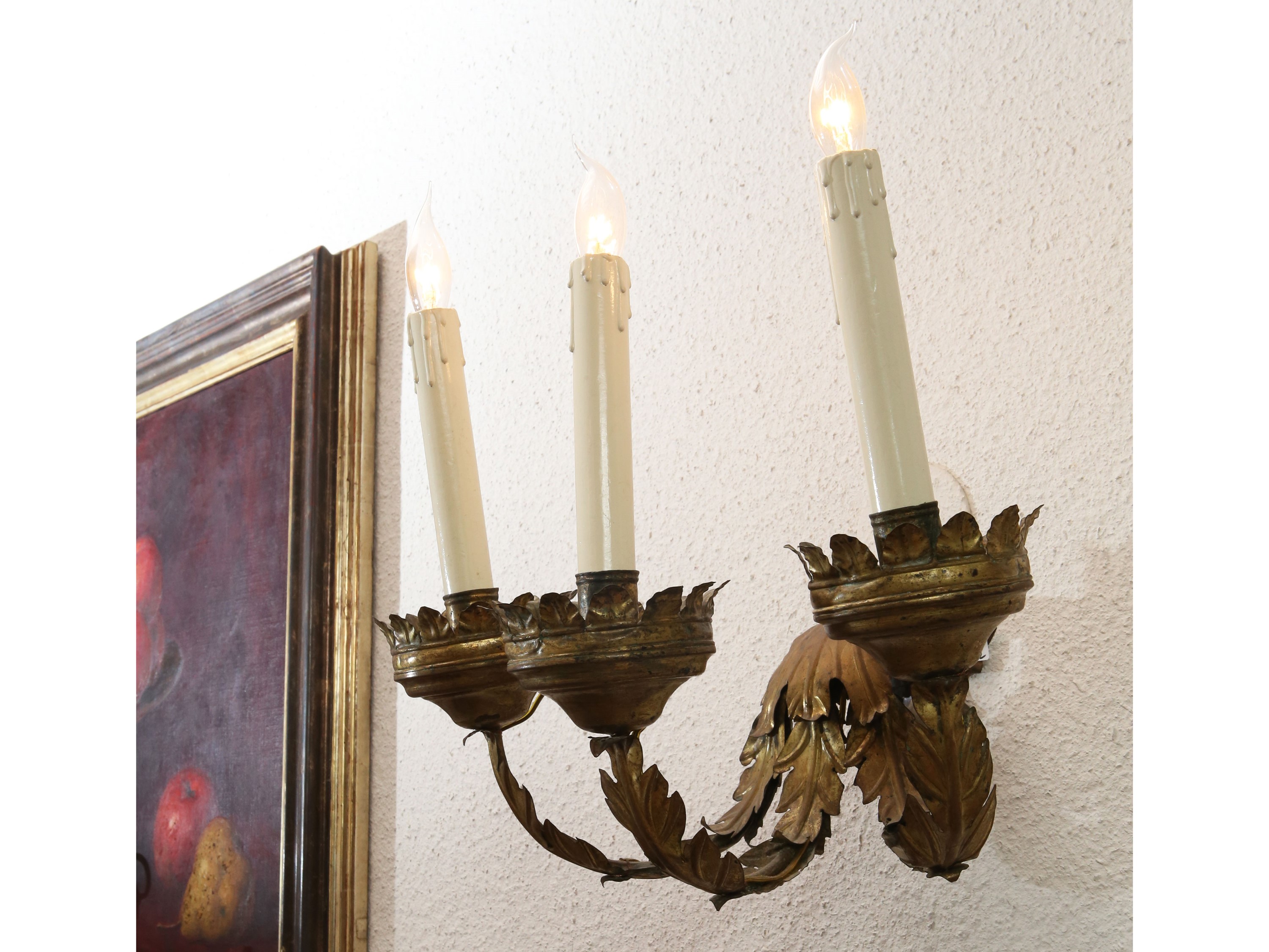 XVIII secolo ciascuna a tre bracci portacandele a doppia volute realizzati come tralci di foglie d'acanto