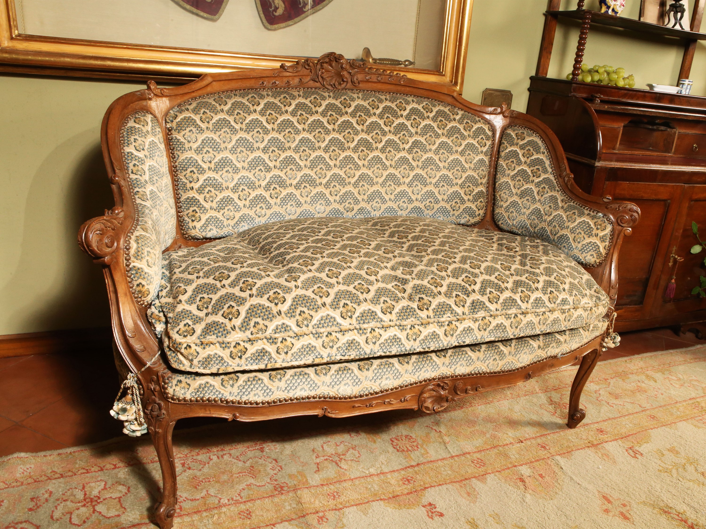 inizio del XX secolo di gusto settecentesco, rivestito in velluto damascato nei toni del verde