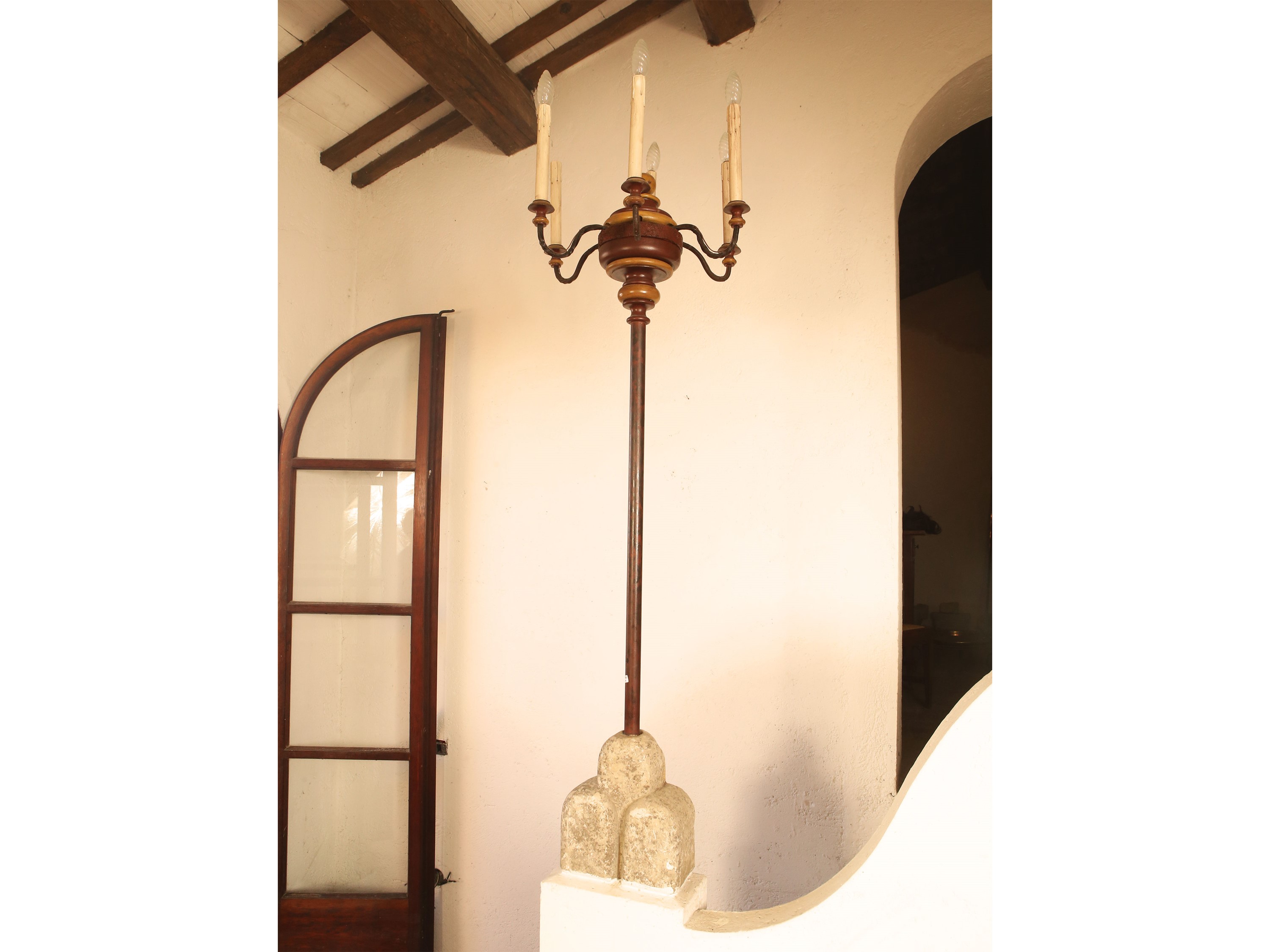XVI/XVII secolo raffigurante il simbolo cristiano dei tre monti sovrapposti, utilizzato per basi di una grande torciera in metallo laccato a sei bracci