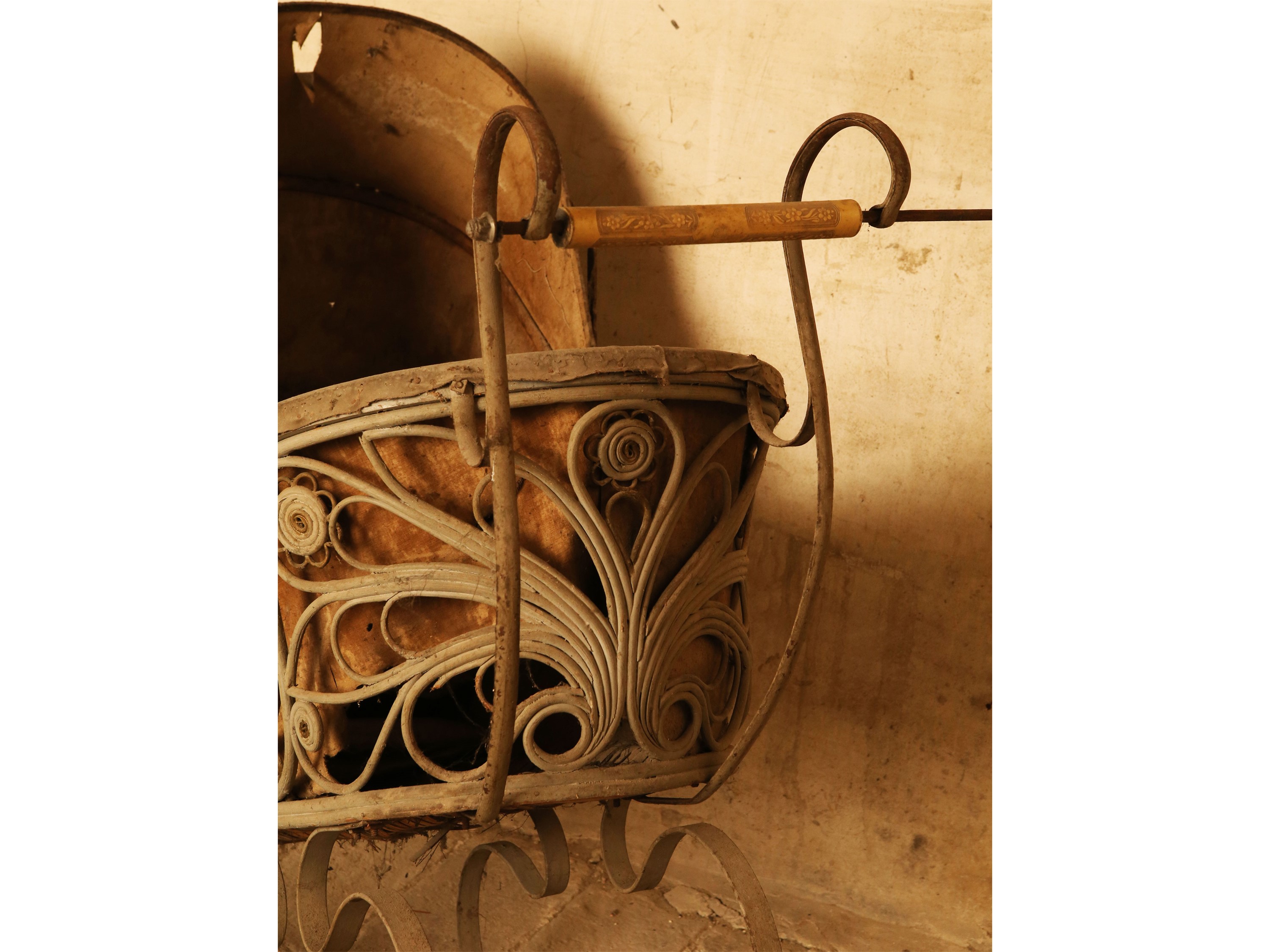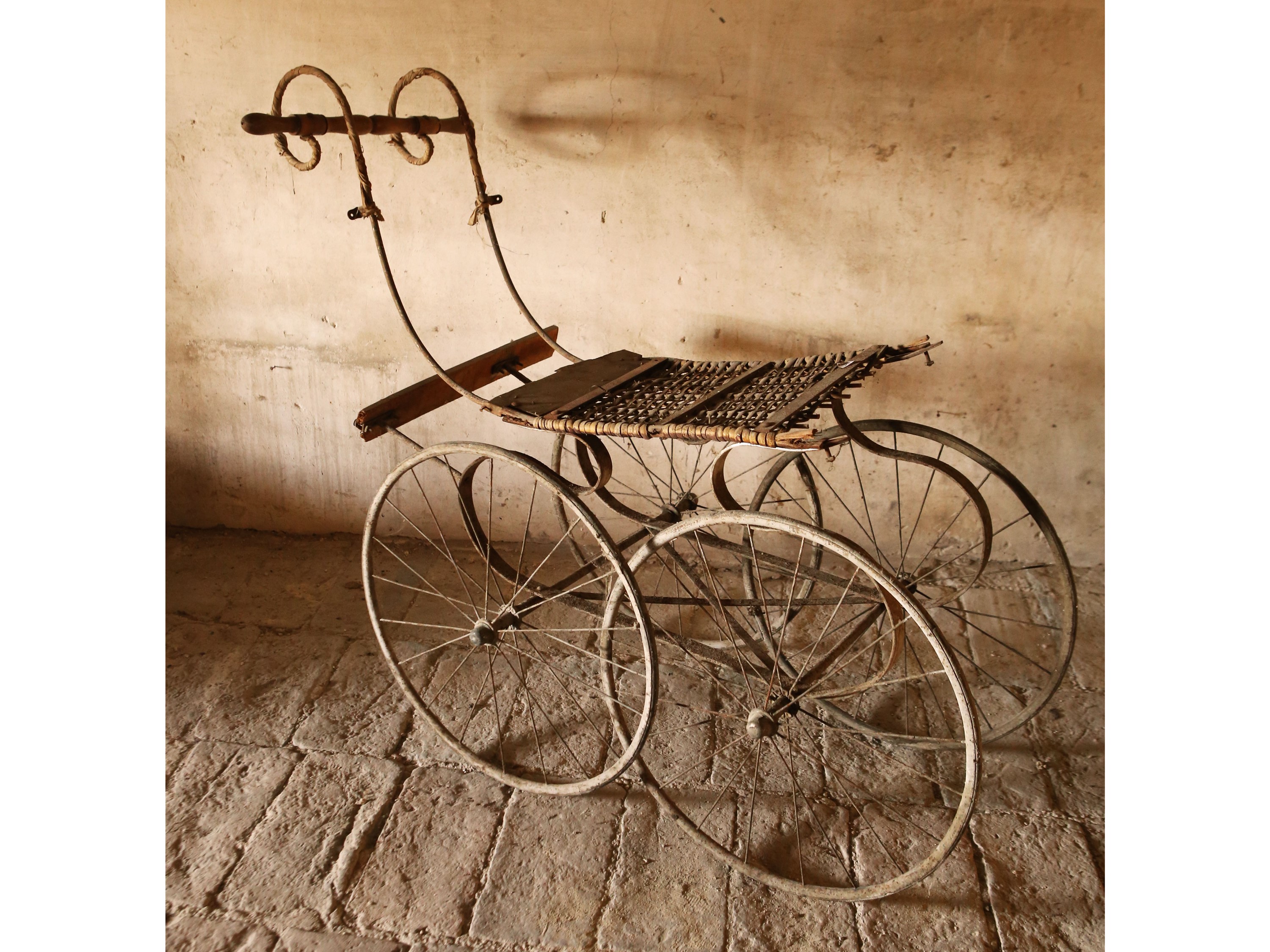 inizio del XX secolo composto da un triciclo e due carrozzine in vimini e metallo, difetti e mancanze