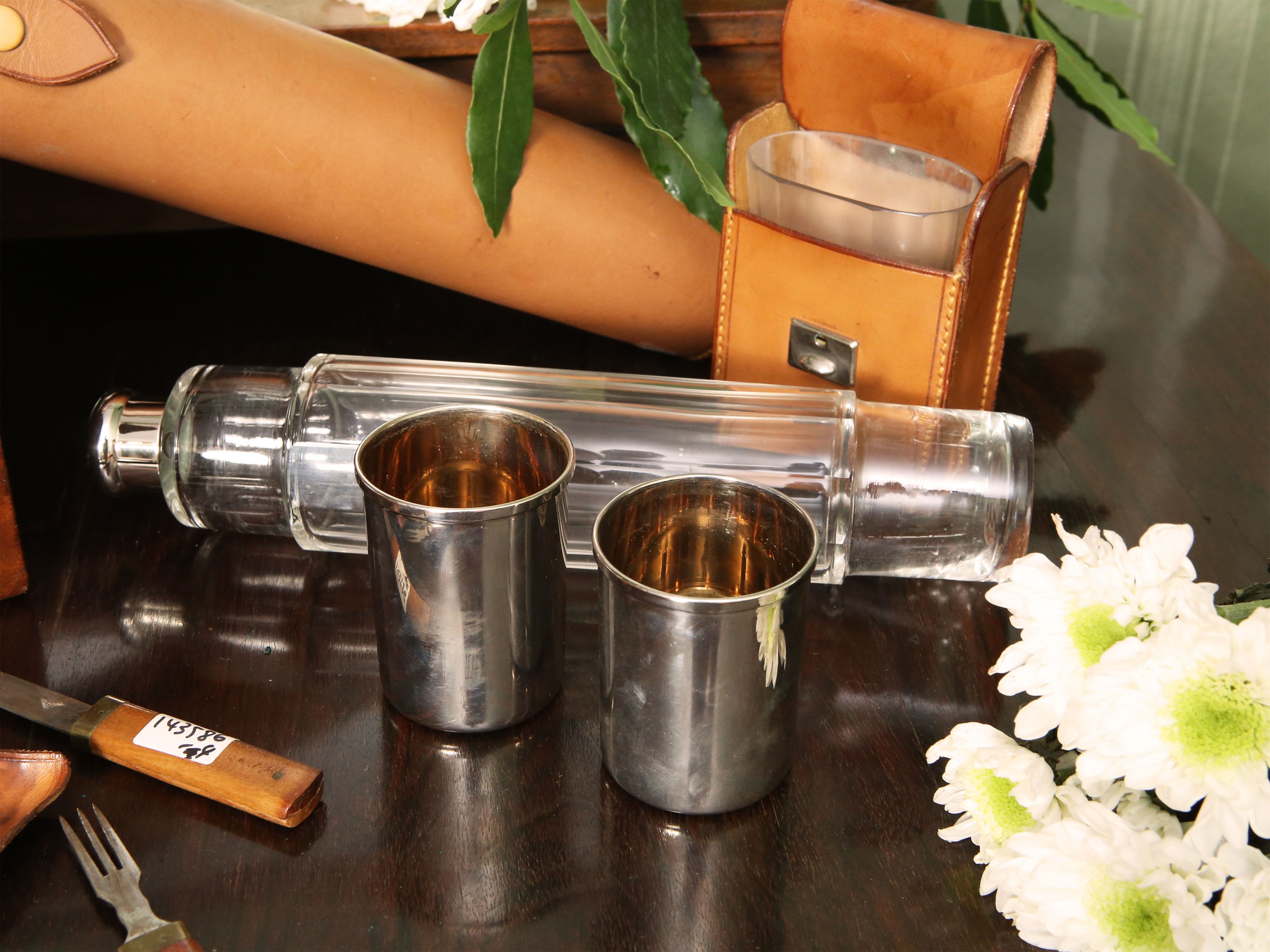 inizio del XX secolo tra cui due set di posate, una bottiglia con bicchieri entro custodia originale in cuoio ed un bauletto in legno