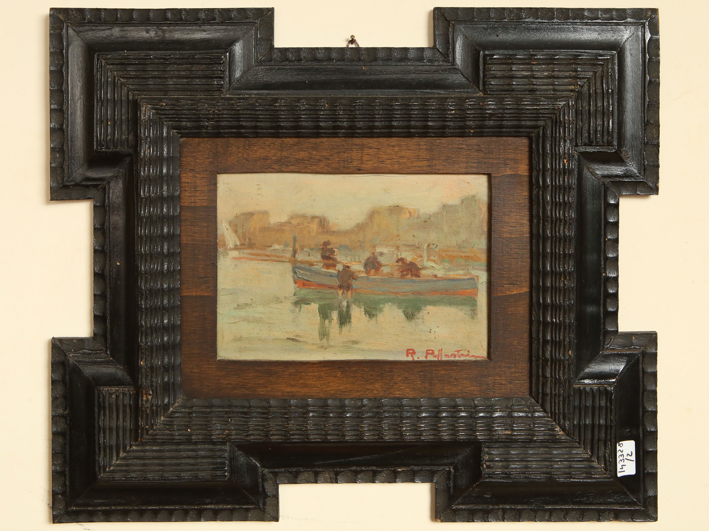 (XIX/XX secolo) coppia di dipinti ad olio su tavoletta, firmati, in cornice, alcuni difetti